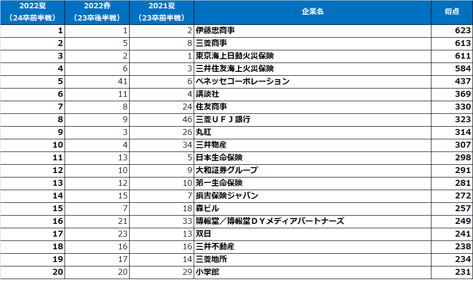 大学生が選んだ就職先人気企業ランキング2022【夏】(2024卒就活前半戦調査)を発表しました