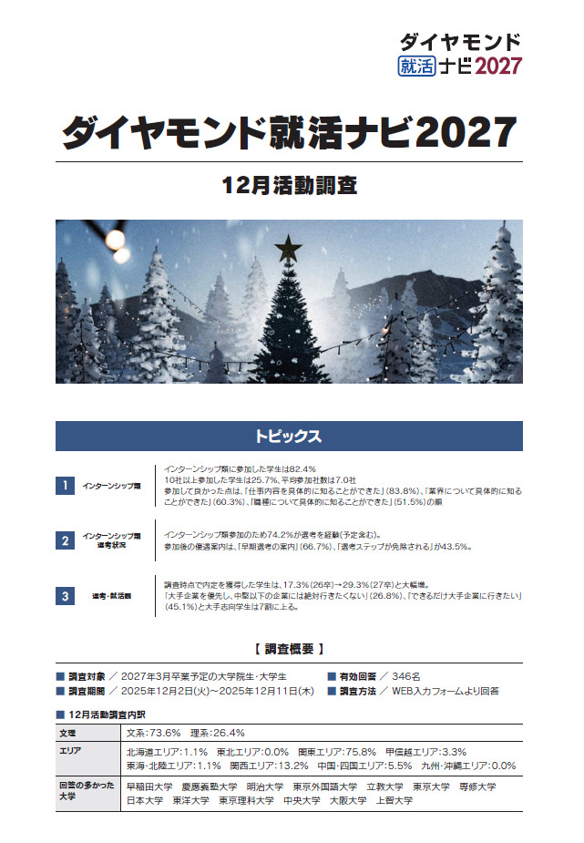 2027卒12月活動調査をリリースしました